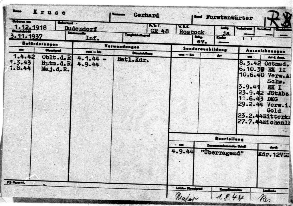Gefallen als Chef des II./GR48 der 12. Volksgrenadier Division, Träger des Ritterkreuzes mit Eichenlaub