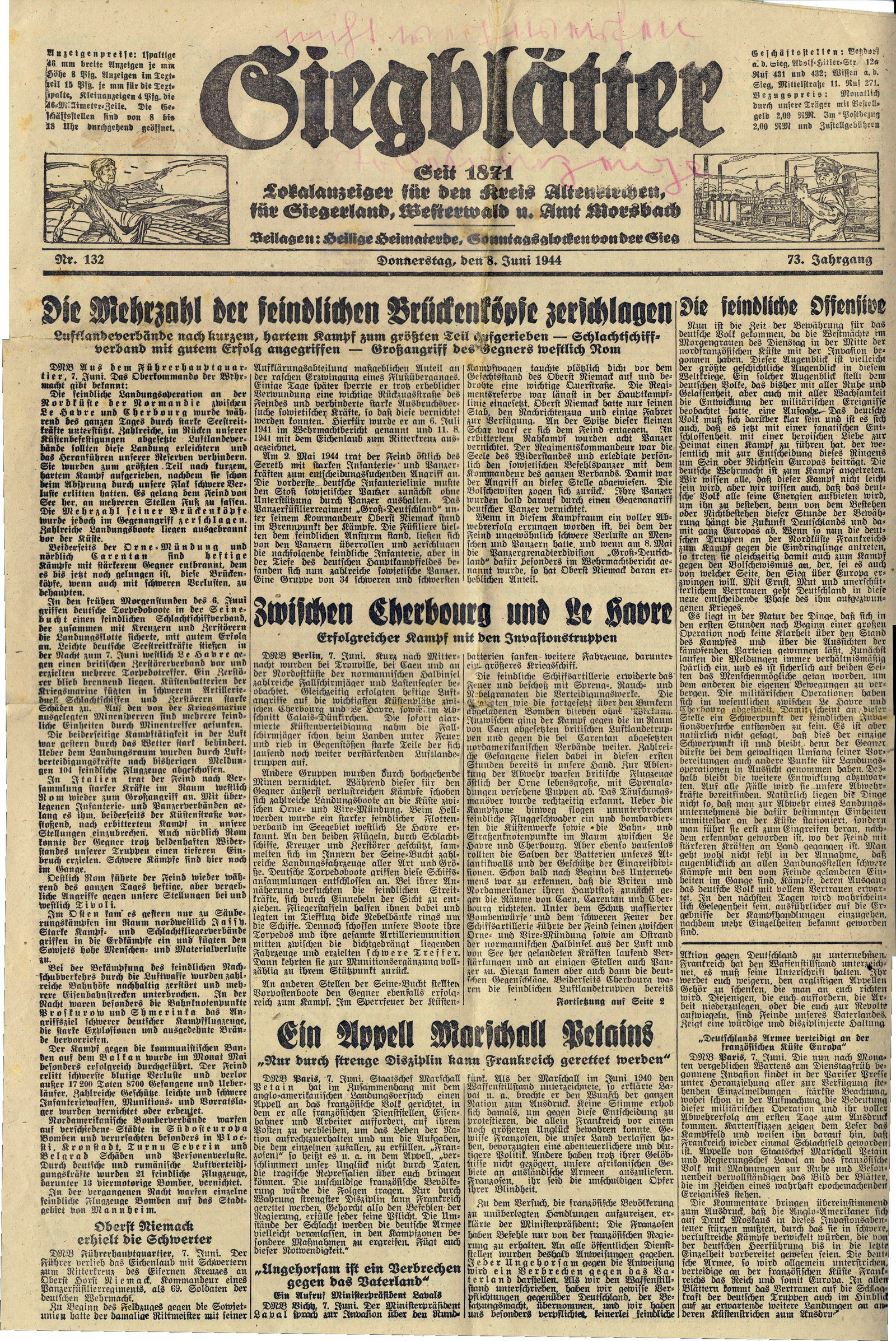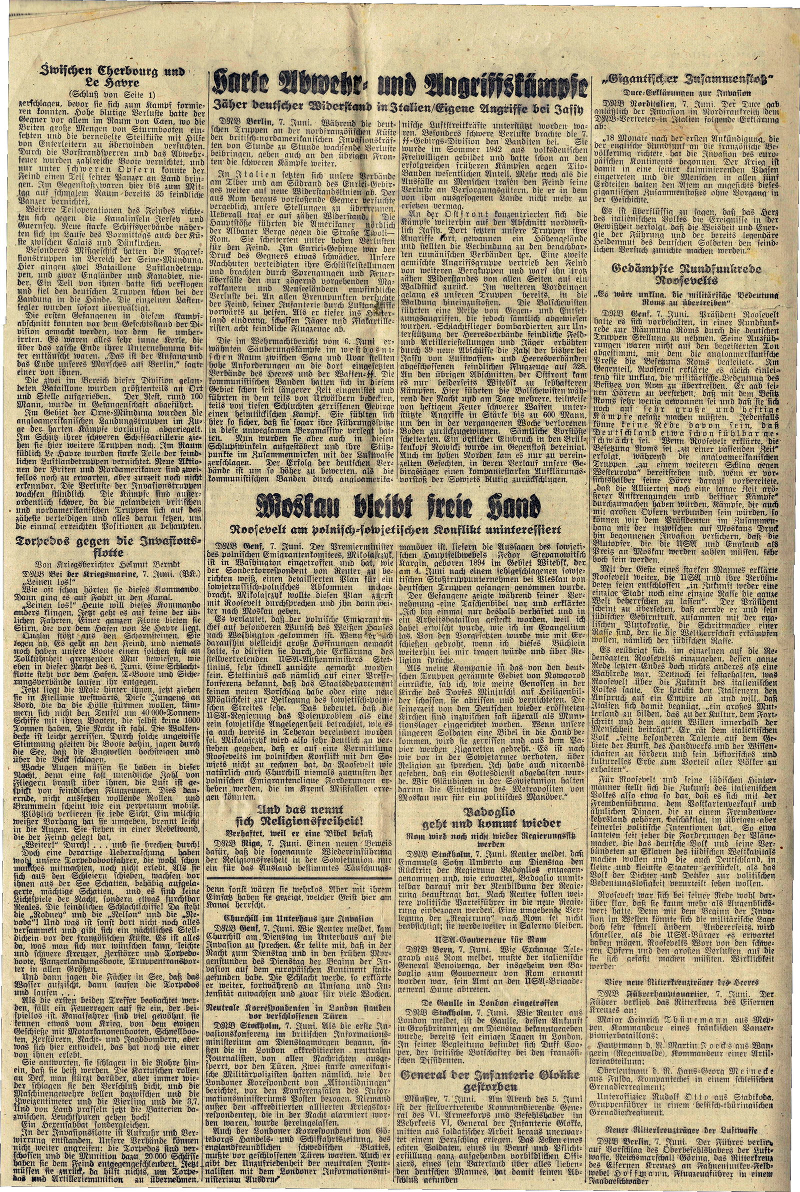 - Ausgabe berichtet über die Kämpfe an der Normandie-Front in Nordfrankreich.